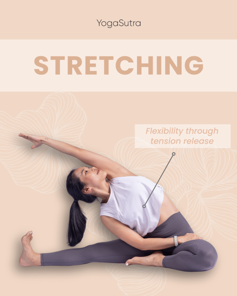 Gently stretch tight areas like hips, hamstrings, shoulders, and spine